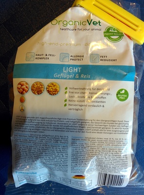 Dehydriertes Gefluegelfleisch 20%Reis 20%MaisRubenfaserGefluegelfettBierhefeMuschelfleischMineralien.